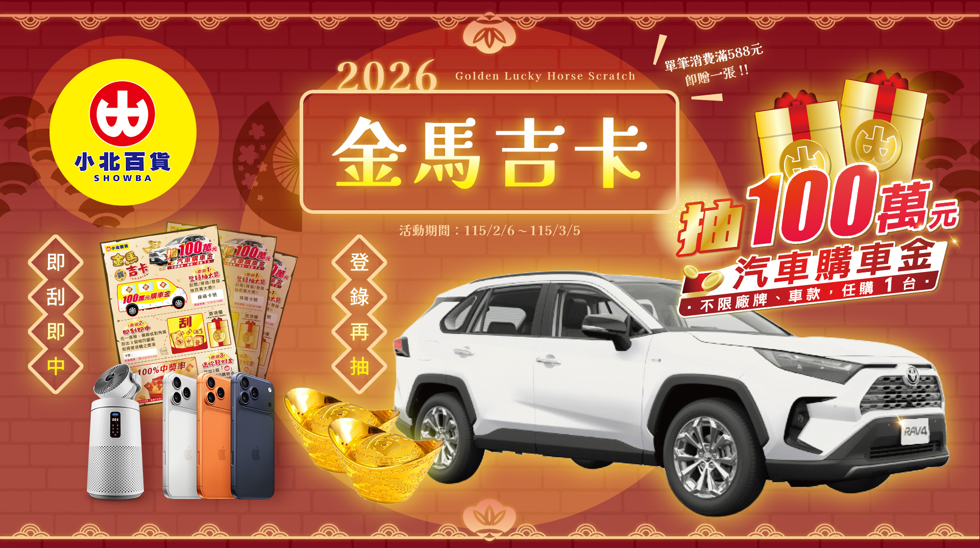 中獎者須於 115/4/9(四)前,攜帶中獎之《金馬吉卡》正本至任一小北百貨門市辦理兌獎手續。